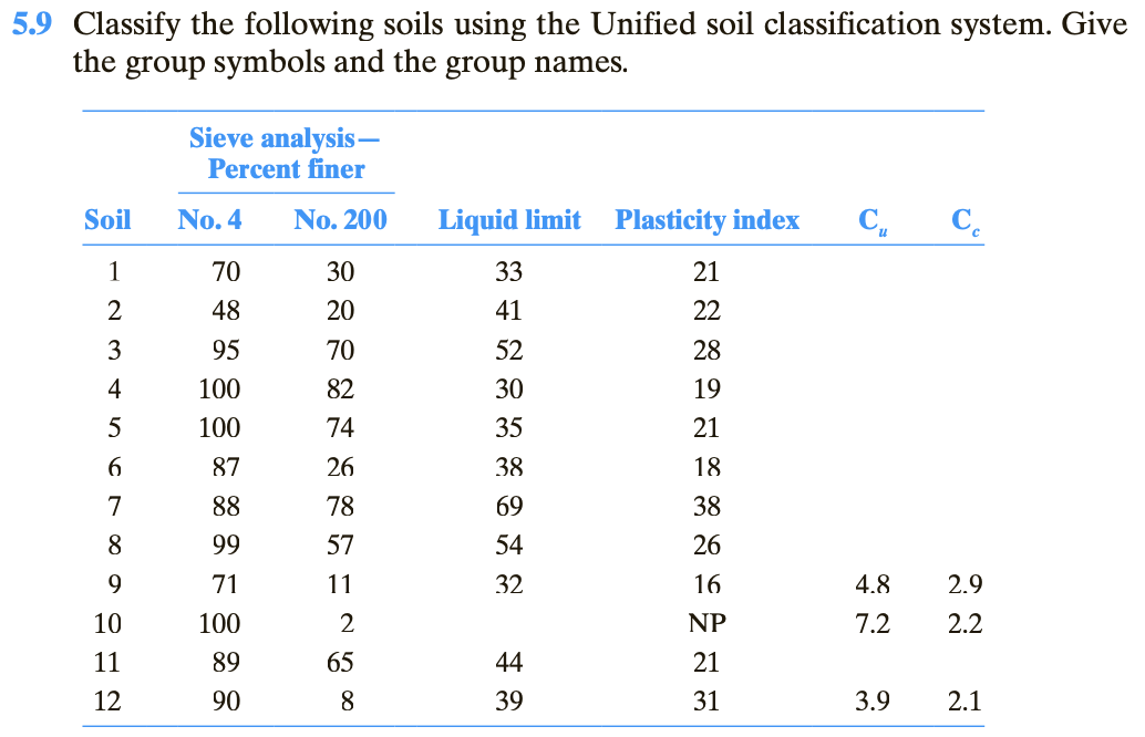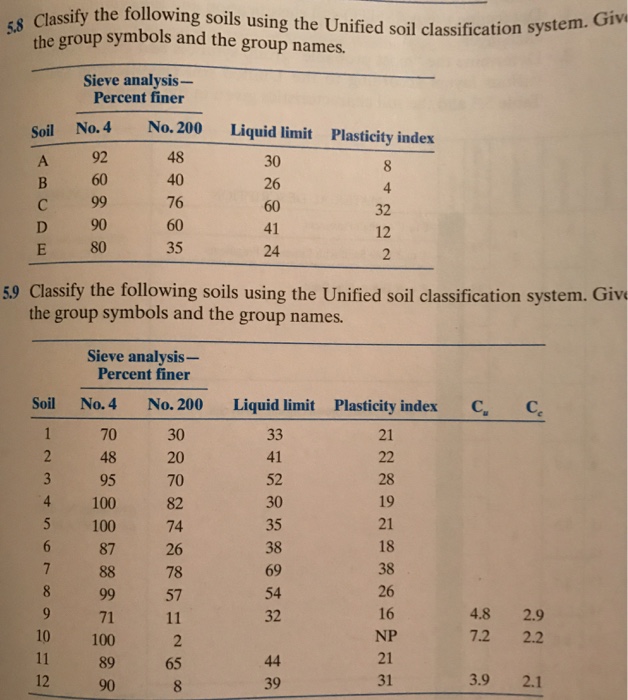 Solved 5 9 Classify The Following Soils Using The Unified Chegg Com