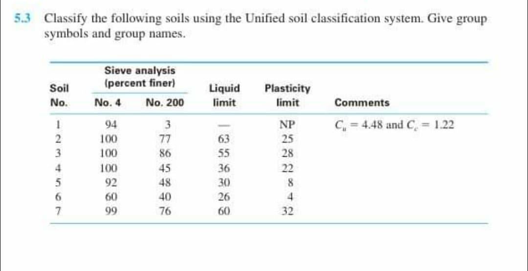 This problem has been solved. Coarse-grained soils that are gravelly and sandy in nature with less than 50 passing through the No. The Unified Soil Classification System the system for classifying soils for engineering purposes has its origins during WWII when A.